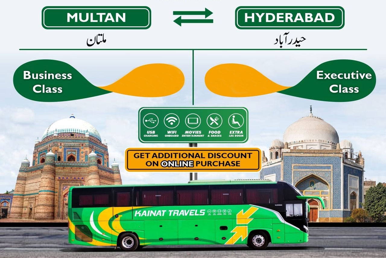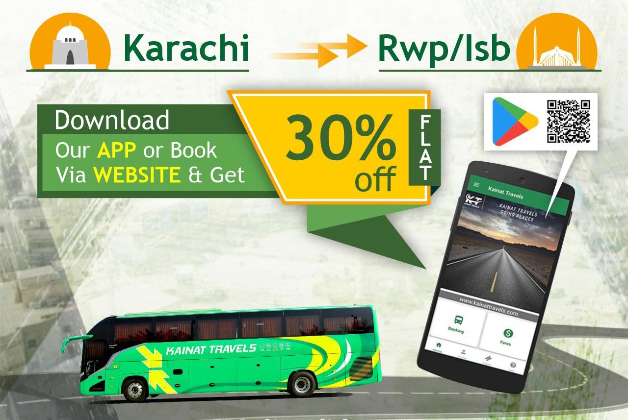 Kainat Travels bestow one of the reputed travelling services in Pakistan with their restful seats and hygenic refreshment.