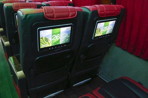 Each seat comes with individual tablets for movies and more.